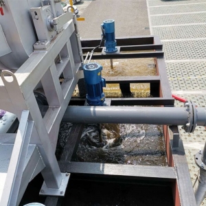 經(jīng)沉淀池沉淀下來的污泥,部分經(jīng)污泥回流泵回流到2級(jí)混合池繼續(xù)參與反應(yīng),另一部分則經(jīng)高剪切機(jī)進(jìn)行污泥剝離,并進(jìn)入磁分離機(jī)進(jìn)行磁粉回收,回收的磁粉再次進(jìn)入2級(jí)混合池繼續(xù)參與反應(yīng),剩余污泥則進(jìn)入后續(xù)污泥處理系統(tǒng)。加藥間調(diào)配好的PAC和PAM溶液由加藥泵輸送至各加藥點(diǎn)。PAC投加到1級(jí)混合池。PAM投加到3級(jí)混合池。